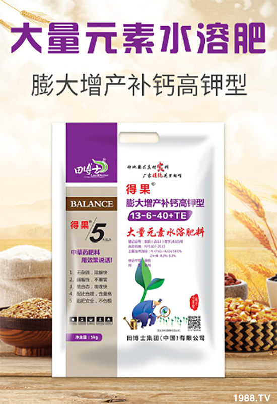 田博士集團(tuán)有限公司【膨大增產(chǎn)補(bǔ)鈣高鉀型大量元素水溶肥料13-6-40+TE-得果】?jī)?yōu)勢(shì)