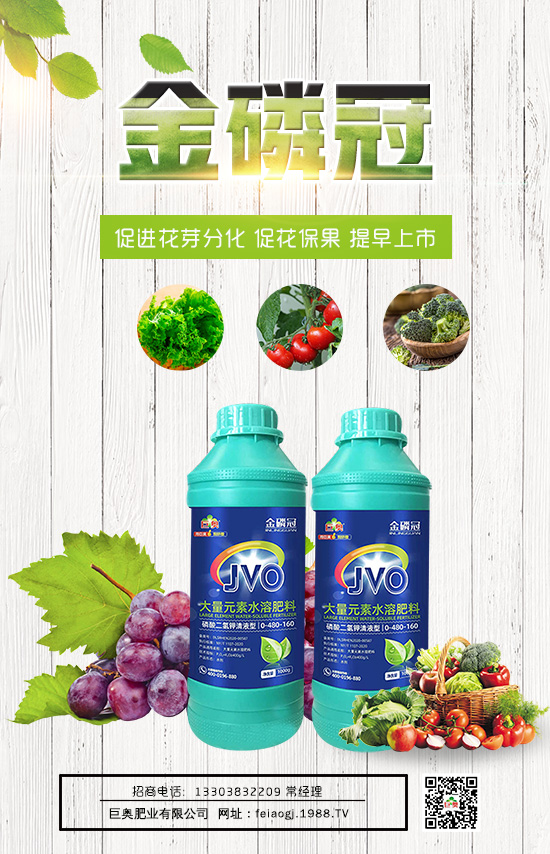 巨奧肥業(yè)有限公司大量元素水溶肥料0-480-160-金磷冠】有效促進(jìn)光合作用和增加樹(shù)體的養(yǎng)分積累,促進(jìn)葡萄花芽分化,提高葡萄開(kāi)花座果,提早上市,提高經(jīng)濟(jì)效益。