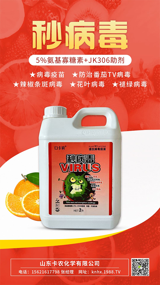山東卡農(nóng)化學(xué)有限公司【秒病毒】鈍化病毒,有效鏟除病毒病,提高植株抗性的作用,降低病毒病發(fā)生幾率。