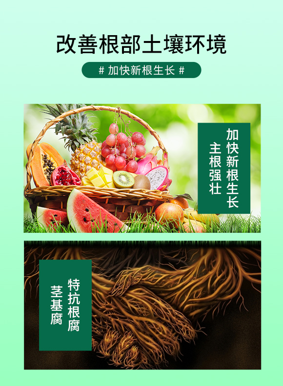 本品有強大的生根養(yǎng)根作用,能使根系變粗,扎根深、加快新根生長,主根強壯,側(cè)根