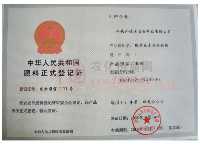 西安山德士生物科技有限公司位于西安經(jīng)濟(jì)技術(shù)開發(fā)區(qū)大興東路46號(hào), 是以生物制品、化肥、葉面肥的開發(fā)、銷售、生產(chǎn)為一體的綜合性企業(yè)。公司擁有總資產(chǎn)1300萬元,年銷售額8000萬元。占地面積6400平方米,職工人數(shù)62人,其中各類技術(shù)人員17人。技術(shù)力量雄厚,擁有肥料、葉面肥、生物酶制品,四條國(guó)內(nèi)先進(jìn)的現(xiàn)代化生產(chǎn)線,生產(chǎn)工藝先進(jìn),并通過省級(jí)三級(jí)質(zhì)量體系認(rèn)證,檢驗(yàn)設(shè)備先進(jìn),質(zhì)檢部配有高效液相色譜儀、高效氣相色譜儀、721分光度計(jì)、原子分析儀等先進(jìn)檢測(cè)設(shè)備,質(zhì)檢人員5名,可、快速進(jìn)行產(chǎn)品質(zhì)量檢測(cè)和控制分析。